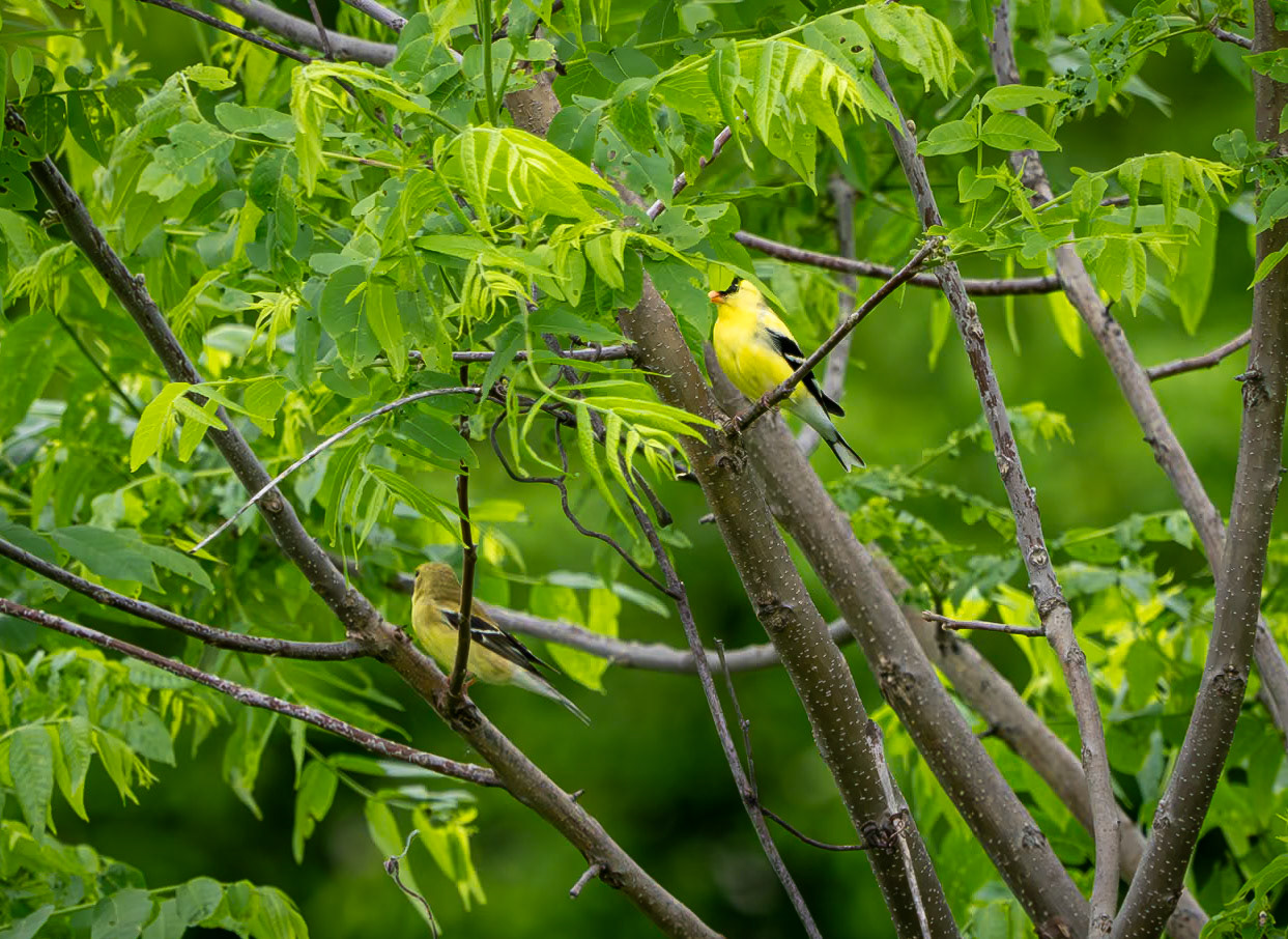 Also in the distance, a male and female goldfinch in their breeding colours were close together in a tree